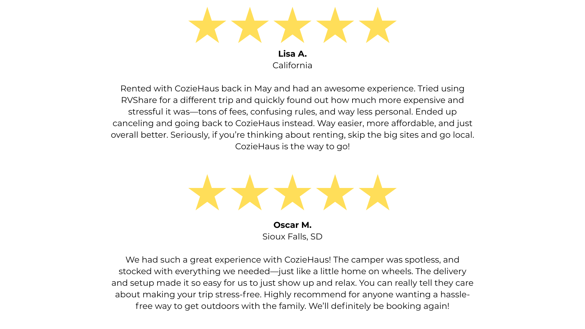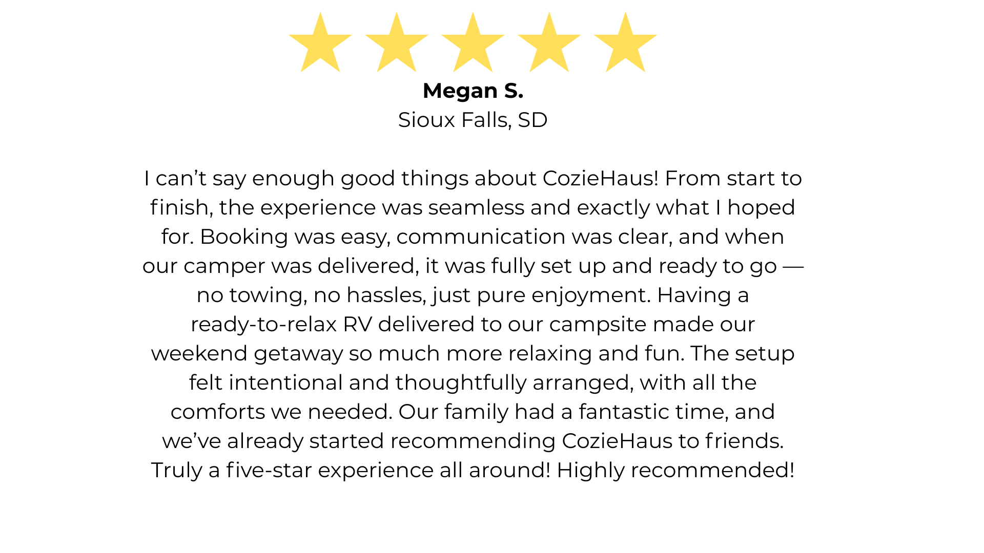 Delivered camper stays for families who want easy camping without towing or setup stress.