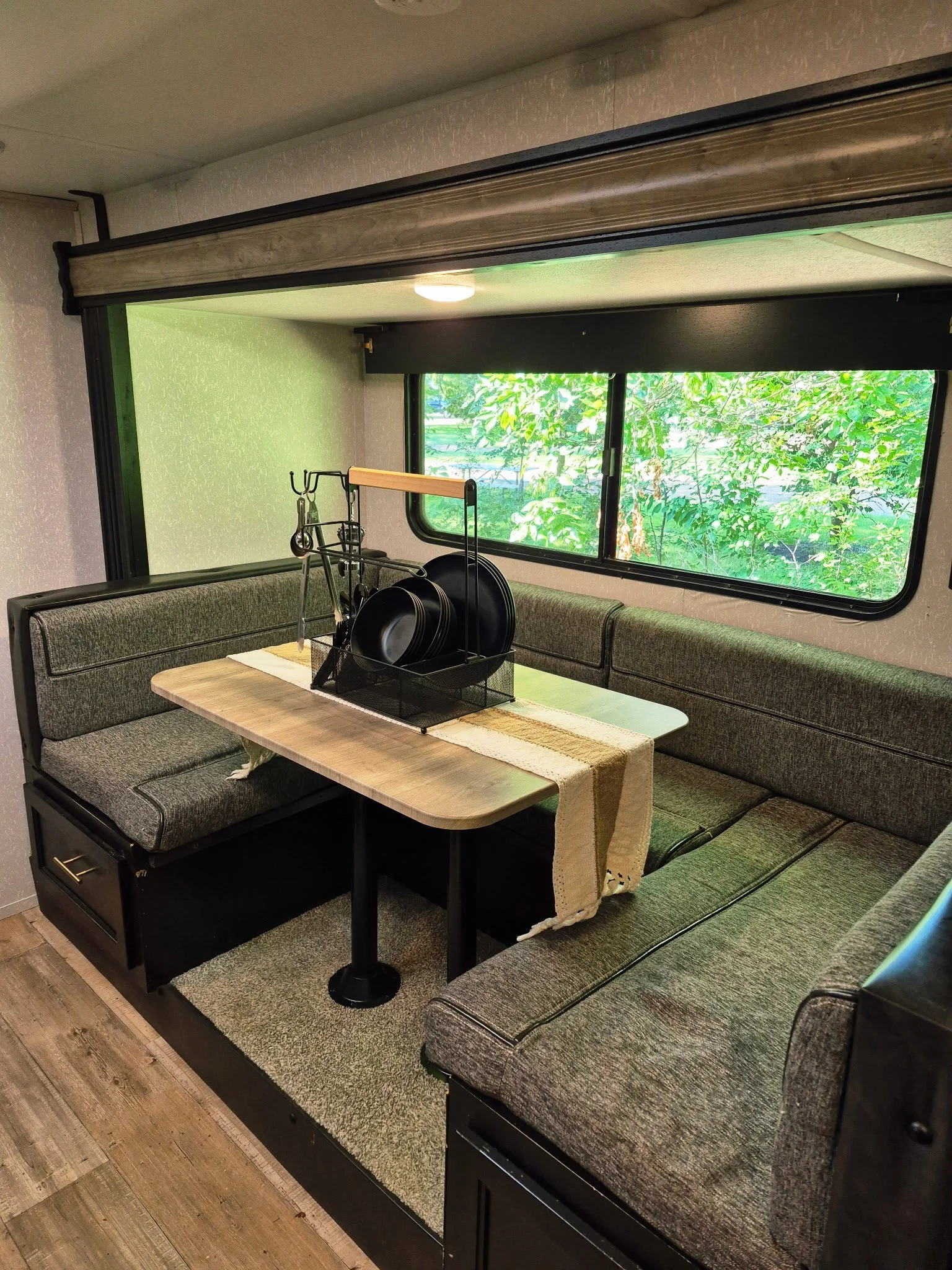 Private Queen Bedroom | Bunkhouse sleeping area | Comfortable space for up to 5 adults & 2 kids | Delivered & Professionally Set Up | Heat & AC Comfort | Kitchen Basics for easy meals | Clean ready-on-arrival interior | Pets always welcome